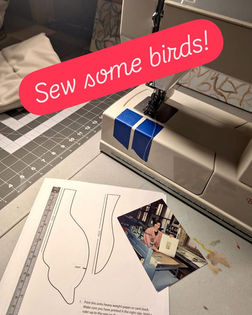 ALL LEVELS OF SEWING SKILL ARE WELCOME! Even if your stitches area little wobbly, we need you. Your bird bases will be decorated with colorful fabrics, ribbons, buttons, shells, sequins, & more, so perfection isn't the goal, conservation is!
